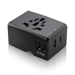 Universal Travel Adapter with USB C Port, 5-in-1 Worldwide Travel Adapter International with 3 USB-A Ports, Multi Travel Power Adapters Plug All-In-One Converter Plug for European UK/EU/US/AUS