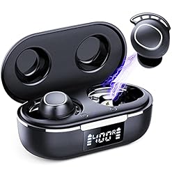 FAMOO Wireless Earbuds, Bluetooth 5.3 Headphones with Deep Bass, IPX8 Waterproof, 42H Playtime, Mini Earbuds with Dual Mic and LED Display, In Ear Earphones for Running Sport Gym Workout Black
