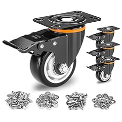 Heavy Duty Caster Wheels Set of 4, 75mm Swivel Trolley with 4 Brakes, No Floor Marks Silent Castors for Furniture, Rubbered Trolley Wheels Load Capacity up to 450KG, 3 inch, Free Fitting M6/M8 Screws