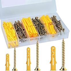 200 Pcs Wall Plugs and Screws Set,Masonry Brick Concrete Fixings Plugs Assortment Kit,Rawl Plugs and Screws in Compartment Box,Zinc Galvanized 3 Different Size