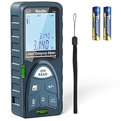 Bauihr Laser Measure 50M, Laser Distance Meter 165ft, Portable Handle Digital Measure Tool with 2 Bubble Levels, Large Backlit 4 Line LCD Display and Waterproof IP54 (Battery Included)