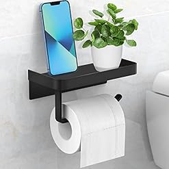 LIWIN 2 in 1 Toilet Roll Holder with Shelf, SUS304 Stainless Steel Two Installations Ways Toilet Paper Holder Wall Mounted Self Adhesive for Bathroom Washroom Toilet Kitchen Black