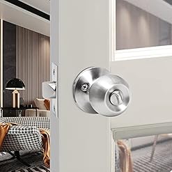 Door Handles with Lock, Privacy Door Knobs for Interior Bedroom Bathroom with Turn Locking, Compatible with Right & Left Handed Doors, Ideal Where Locking Function Privacy is Required Such, 1 pack