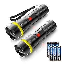 Fulighture Torches 2-Pack, 600lm High Brightness Zoomable Small Torch with Yellow Ring for Kids, Home Indoor Lighting, Emergencies, Batteries Included