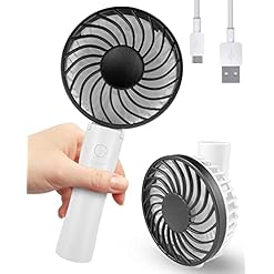 KALAHOL Mini Handheld Fan, USB Rechargeable Hand Fan with 3 Speeds, Battery Powered Portable Fan, Mini Fan 180° Foldable Desk Desktop Fans for Desktop School Office Home Travel Camping – Black White