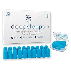 Ear Plugs for Sleep by Deep Sleeps, 10 Pairs of Reusable Bullet Shape Foam Ear Plugs for Small to Medium Ears, 38dB of Passive Noise Cancelling, Slow Expanding Soft Earplugs for Sleeping