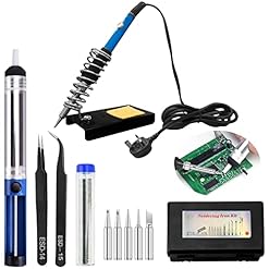 Randalfy Soldering Iron Kit Electronics, 60W 220V Adjustable Temperature Welding Tools, 5Pcs Soldering Tips, 2Pcs Tweezers, Desoldering Pump, Soldering Iron Stand for Welding, Electronic Work, Crafts