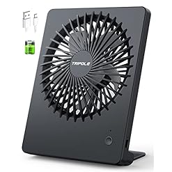 TriPole USB Desk Fan, 2000mAh Portable USB Fan 3 Speeds Rechargeable Mini Fan Battery Fan Last 4-16hrs, 180°Adjustable Table Cooling Fan 30dB Silent Fan for Bedroom, Office, Library, Travel-(Black)