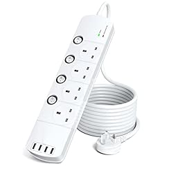 hohowell 3250W Surge Protector Power Strip 1050 Joules with 4 USB Slots, 4 Way Universal Sockets, Overload Protection Individually Controlled On/Off Switch 4.92ft Extension Lead Cord for Home, Office
