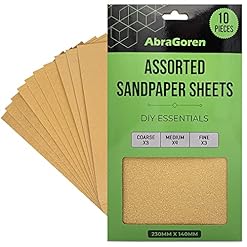 Pack of 10 Sand Paper Sheets – Mixed Grits, 3x Fine, 4x Medium, 3x Coarse – Assorted Sandpaper for Wood and Walls