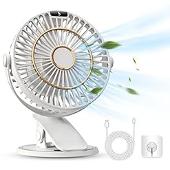 COZII Clip on Fan Rechargeable, Mini USB Desk Fan Silent with 5 Speeds LED Display – 720° Rotatable Powerful Table Fan, 3 in 1 Portable Small Fan for Office, Bedroom, Study, Camping