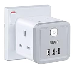 Multi Plug Adapter with USB, BEVA Cube Plug Extension with 4 AC Outlets 3 USB Slots, UK Wall Socket, 13A Power Extension Socket Power Adapter for Home, Office, Kitchen, Cruise