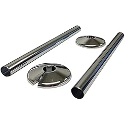 2 x Radiator Pipe Covers and Pipe Collars in Chrome Effect 15mm x 200mm