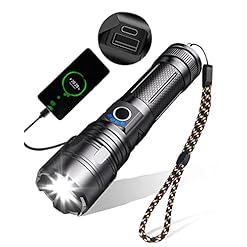 Shadowhawk Torches Led Super Bright, 1000 Lumens Rechargeable USB Led Torch XHP70.2, Tactical Torch Battery Powered IP65 Waterproof Zoomable, for Dog Walking Camping Emergency(with 5000mAh Battery)