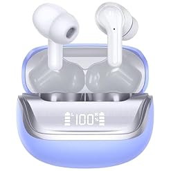 Donerton Wireless Earbuds, Bluetooth 5.3 Headphones in Ear HiFi Stereo, Mini Wireless Headphones with Noise Cancelling Microphone, IP7 Waterproof Wireless Earphones, Purple White