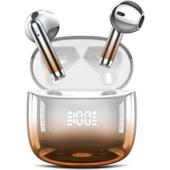 KICOEON Wireless Earbuds Bluetooth 5.3 Headphones with 2 Mic HiFi Stereo Sound, Wireless Headphones with Dual LED Display Touch Control, 40H Playtime Bluetooth Earphones IP7 Waterproof, Orange