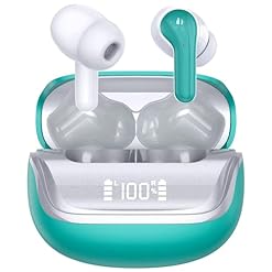 Donerton Wireless Earbuds, Bluetooth 5.3 Headphones in Ear HiFi Stereo, Mini Wireless Headphones with Noise Cancelling Microphone, IP7 Waterproof Wireless Earphones, Green