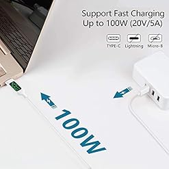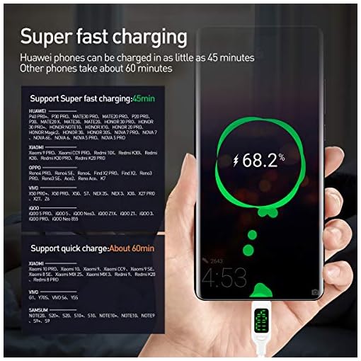 100W/5A USB C Cable,Supercharge Type C Charger with LED Display,USB A to Type C Charging Cable Fast Charge for Samsung S20/S10/S9/S8, Huawei P30 Pro, P20 Pro, LG V40 and Other USB C Charger-1.2M
