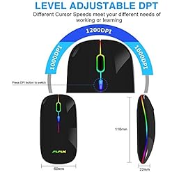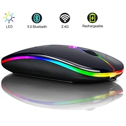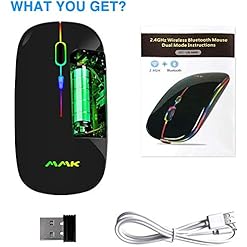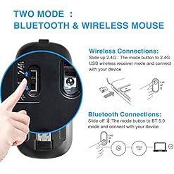 aMZCaSE Wireless Bluetooth Mouse, Slim Mouse 2.4G Portable USB Optical Wireless Mice, LED Rechargeable Dual Mode(Bluetooth 5.0 and 2.4G Wireless) Mouse for Laptop, PC, Mac OS, Android, Windows