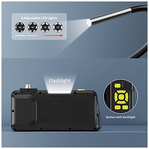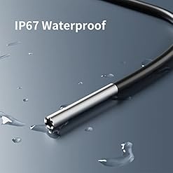 6 LED Lights and IP67 Waterproof : The snake inspection camera comes with 6 super bright LEDs Light which has 3 adjustable brightness levels, giving you a clearer view in the dark environment. Camera Probe is IP67 Waterproof can work underwater at a depth of 1 meter, more than 1 hours.