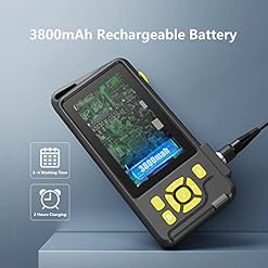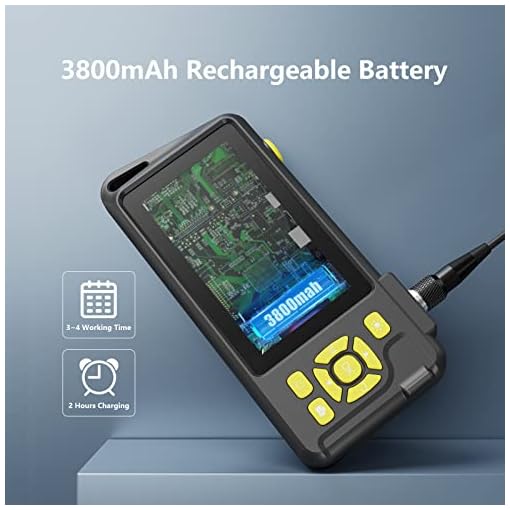 32GB TF Card & 3800mAh Battery : Our borescope inspection camera includes a micro SD card that supports JPG images and AVI video recordings, as well as records audio & video. With built-in 3800mAh battery which can work for 3~4 hours. An extra super bright LED light is designed on the back of the Scope camera to provide some assistance in your inspection.