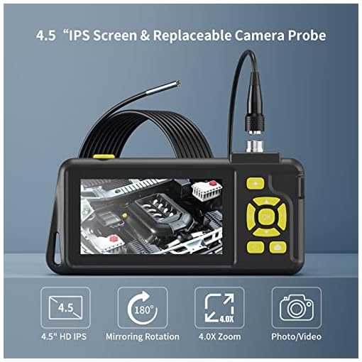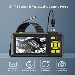 4.5″IPS Screen & Image Rotation : This industrial endoscope with a a high-resolution 4.5″IPS screen, which can capture true 1080P crisp picture and fluent videos, and the image can rotate the image 180°, how convenient! widely used in fields such as car inspection, mechanical maintaining, household appliance inspection, house maintenance, wall structure inspection, etc.