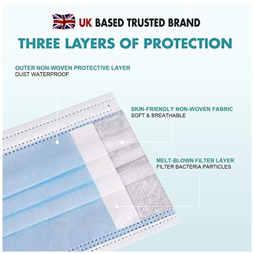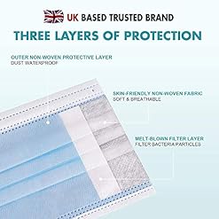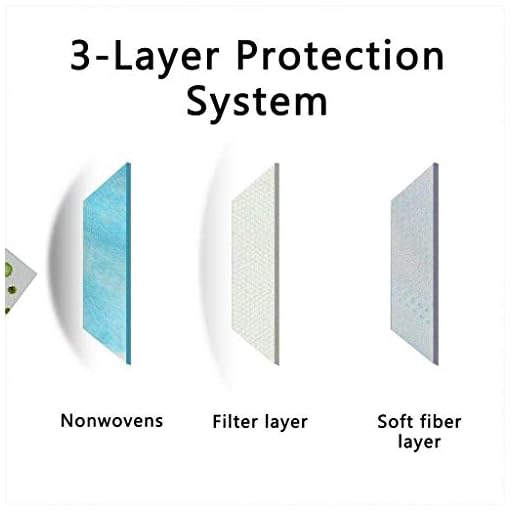 3 Layers material: Non-woven fabric, high-density filter layer and skin-friendly composite fiber- Fluid resistant while maintaining excellent breathability and particulate filtration.