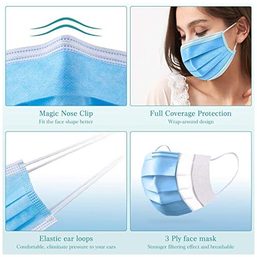 3-Layer Protective Disposable Face Masks, Breathable Face Mask,High Filterability, Sutaible For Sensitive Skin (Blue)