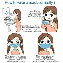 Color: blue, disposable face mask, dispose of properly after use.