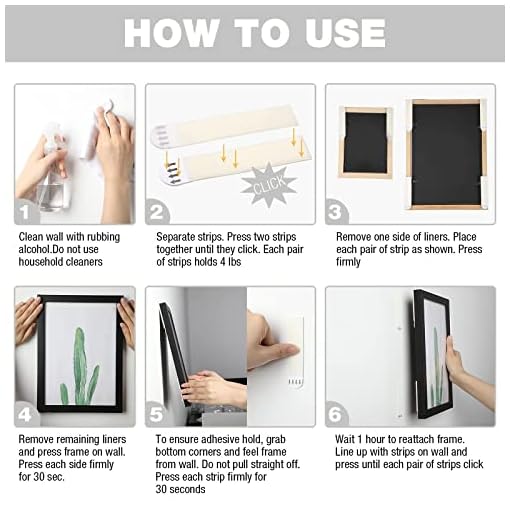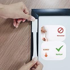 EASY TO USE: The frame adhesive strip consists of two parts with double side hook and loop mounting, making it easy to remove, straighten and reposition the frame without the need for nails, screws, or tools, leaving no marks or sticky residue.