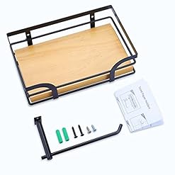 【Sturdy and Durable】 Our kitchen roll holder wall mounted is made of high quality iron material and wood. The black eco-friendly wear-resistant coating and the waterproof coating on the wood make the toilet paper roll holder practical and beautiful, while easy to clean.