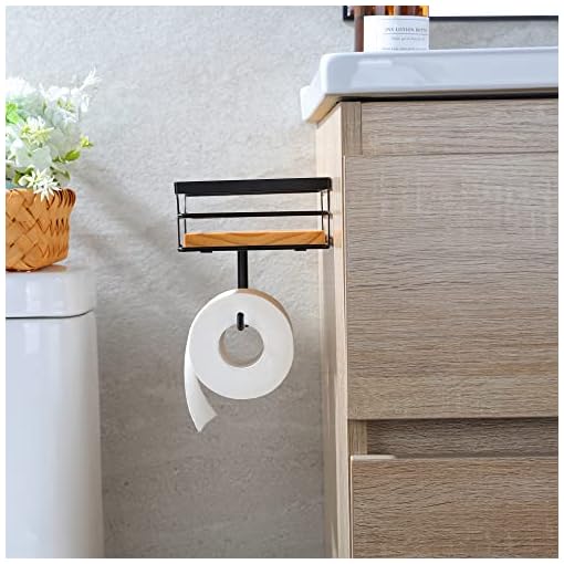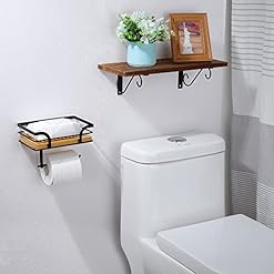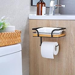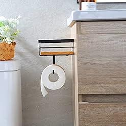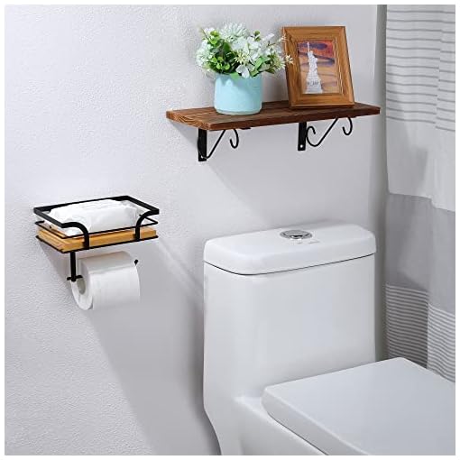 【Modern and minimalist】 Minimalist sense of lines, elegant and stylish with a collision of natural and black colors. With this toilet paper holder with shelf, can make your bathroom look orderly and is a great choice for home decoration.