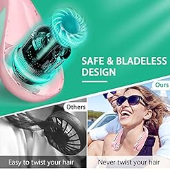 Safe & Bladeless Neck Fan: This wearable neckband fan has no fan blades, so never worry about getting your long hair caught like other neck fans, not heavy at all nor does it slide around, safer for children, the elderly or pets.