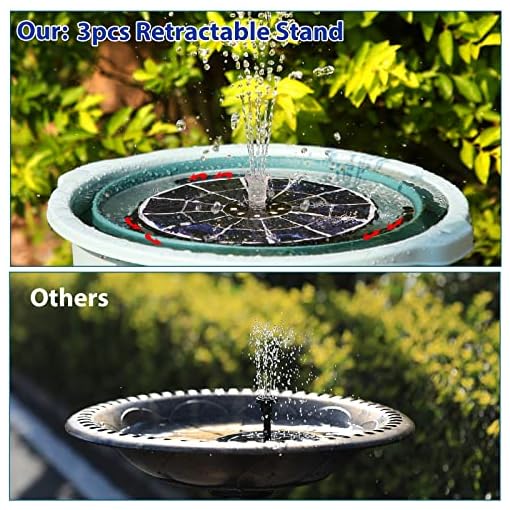 [Upgrade Extension Bracket] : AMZtime 5.5W LED solar water fountain adopts high-quality glass panel, which is durable under high-intensity sunlight and has a long life cycle. Upgrade the detachable bracket solar fountain, which can well stabilize the fountain pump in the center, prevent the fountain from rotating all the time or the water spraying out, and play a good water circulation role.