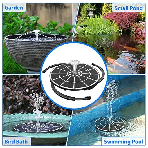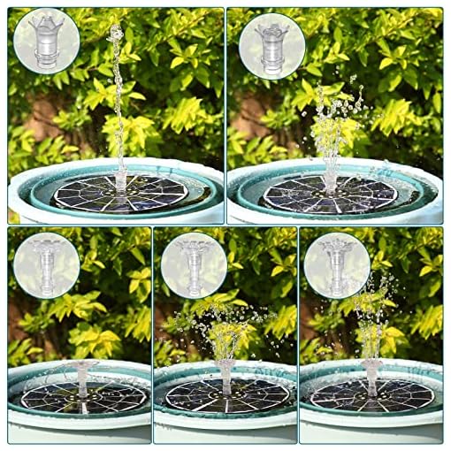 [16 Types of Nozzles] : AMZtime Solar Pond Fountain is equipped with 2 sets of replaceable nozzles, containing a total of 16 water pattern shapes. Nozzle styles are single-layer, double-layer, and rotating. Each nozzle has its own jet height and jet shape, which can be adjusted by changing. Diverse water features make the whole garden more vibrant and are the perfect decoration for the garden.