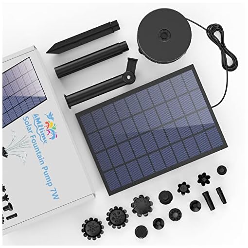 AMZtime DIY Solar Fountain Pump, 7W Solar Water Fountain with 5FT Water Pipe 16 Nozzles Solar Powered Pump Sprays Various Water Features for Bird Bath, Garden Decoration, Fish Tank and Pond