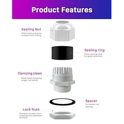 【Skillfully Design】The locknut stuffing glands with gasket are easy to install, no disassembly required, just plug in the cable and tighten the locking nut.