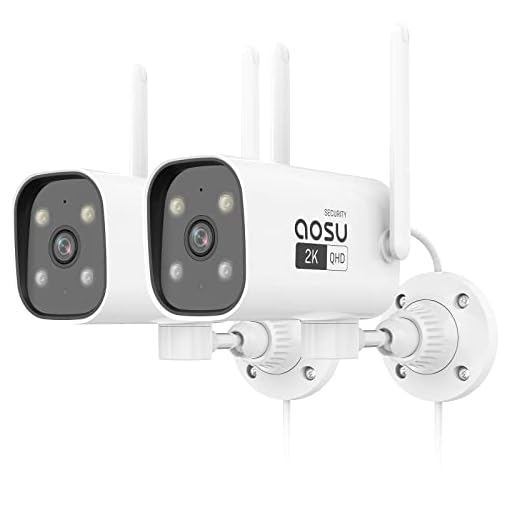 AOSU 2K Security Camera Outdoor with Color Night Vision, 2 Pack Wired home security cameras support 24/7 Recording, Auto tracking CCTV camera systems with Voice Changer, 2 Way Audio, 2.4/5 GHz WiFi