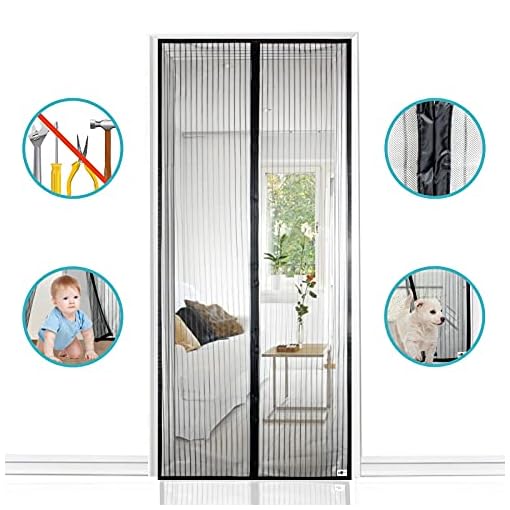 Attach the mosquito net very easily with the strong Velcro fasteners on the door frame, extra nails included in the delivery, strong enough for years of use. Ideal for balcony doors, hands free, pet friendly use