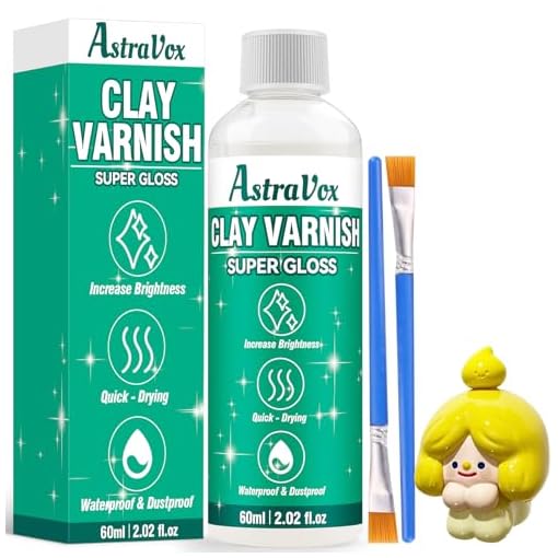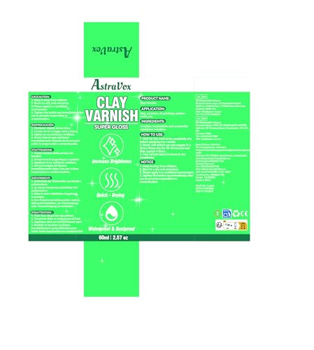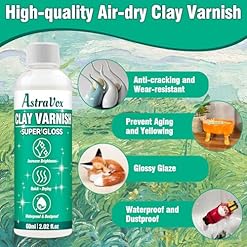 AstraVox 60ml Air Dry Clay Glaze with 2 Brushes, Clay Glaze, Acrylic Varnish to Prevent Crack and Yellow, Waterproof Clay Varnish for Acrylic Painting, Air Drying Clay, Craft, Ceramic, Gloss Varnish