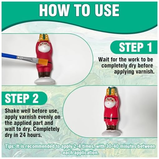 Long-Lasting Gloss Clay Varnish: Use air dry clay varnish for a professional-grade glossy effect, making the artwork look more attractive. Clay glaze forms a crystal clear and solid protective film after drying, effectively preventing the work from yellowing, which can well meet the needs of professional artists and amateurs