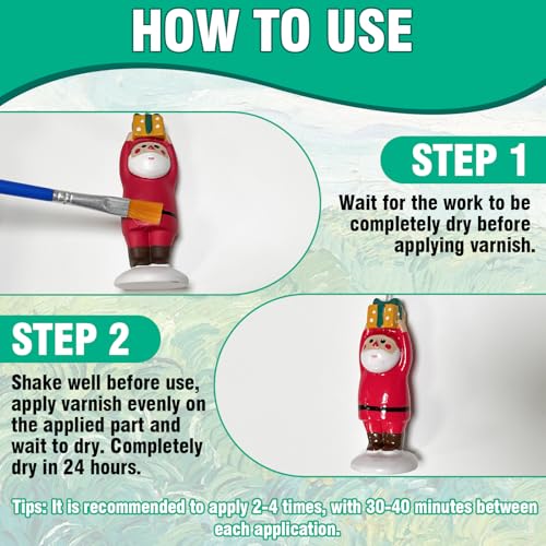 Wide Application: Acrylic varnish suits various surfaces and media, such as clay, oil painting, wood products, ceramics, plaster, canvas, etc. Air dry clay glaze is also great for sealing paintings, drawings, and mixed media artworks, giving you outstanding results every time you use it