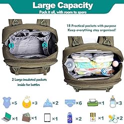 BabbleRoo Baby Changing Bag Backpack, Nappy Changing Back Pack Diaper Bags with Changing Mat & Pacifier Holder for Mom & Dad