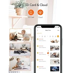 Optional Cloud & Local Storage – Babytime smart indoor camera supports up to Class 10 micro SD card, up to 128GB SD card(sold separately), and cloud storage. The cloud service(sold separately) can stock large videos and protect them safe from loss and damage.
