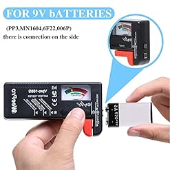 【VERSATILE APPLICATION】 This universal battery tester can test many different types of batteries, and work with both standard and rechargeable household batteries. Works with all 1.5v batteries, AA, AAA, C, D, button cells, and 9v batteries.