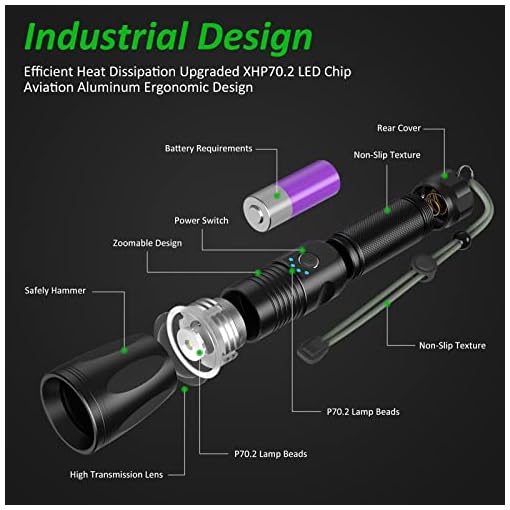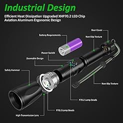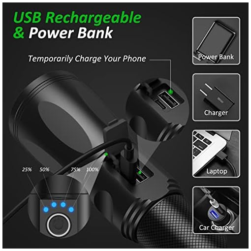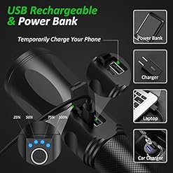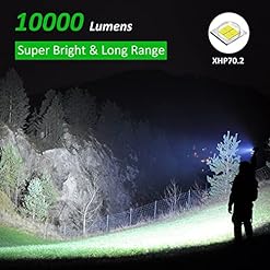 【SUPER BRIGHT LED TORCH】: With the P70 chip, this high lumen flashlight can reach 10000 lumen. Provides an incredibly powerful beam. Is perfect for outdoors, hiking, camping, fishing, emergencies and also an ideal gift for men.