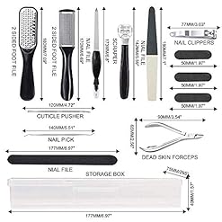 EFFICIENT AND COMPLETE TOOLS: A set includes 15 kinds of pedicure tools, double-sided thick and thin foot files, double-sided fine stainless steel foot files, stainless steel foot planers, two-in-one nail files and dead skin forks, nail polishing strips, Dead skin pliers, nail clippers, etc.Different manicure pedicure tools to meet your different needs.