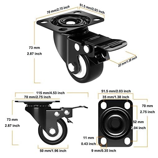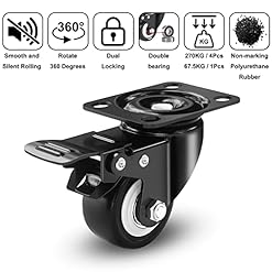 [SMOOTH & NON-MARKING] 2 inch/5cm Polyurethane (PU) Swivel caster wheels allow 360 degrees rotation, much easier to turn corners, move the furniture sideways, and so on. It is ideal for furniture wheels and cartwheels, which will protect the floor.