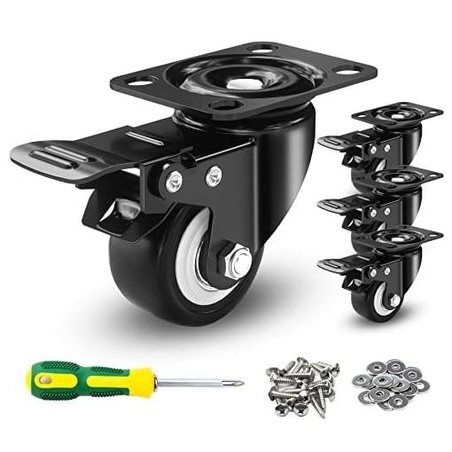 Caster Wheels Set of 4, 50mm Swivel Trolley, Heavy Duty Castor Wheels with 4 Brakes, Castors for Furniture with Locking, No Floor Marks and No Noise PU Wheel, Up to 240KG (Screws+Washers)