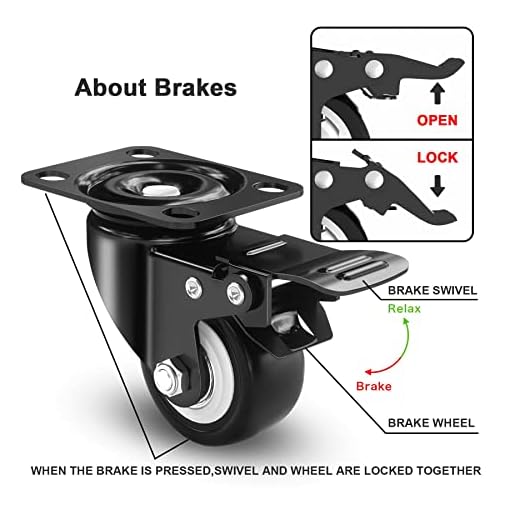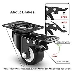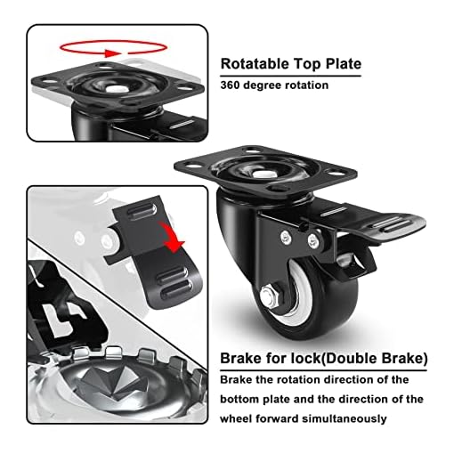 [DOUBLE SAFETY BRAKE] This caster set includes 4 wheels, and each wheel has a double safety brake. When this brake is pressed down, both the wheel and the swivel are locked simultaneously, holding the equipment firmly in place.